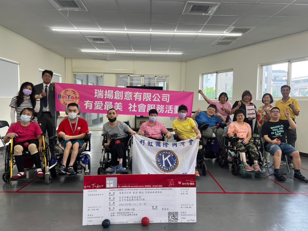 主辦單位瑞揚創意有限公司執行長莊惠伶及彩虹國際同濟會前會長陳瑞徵,於9月20日下午至台中市腦麻協會關懷捐贈近五十多萬的票券,讓協助身心障礙的孩子與家長們,可以透過演唱會得關懷。