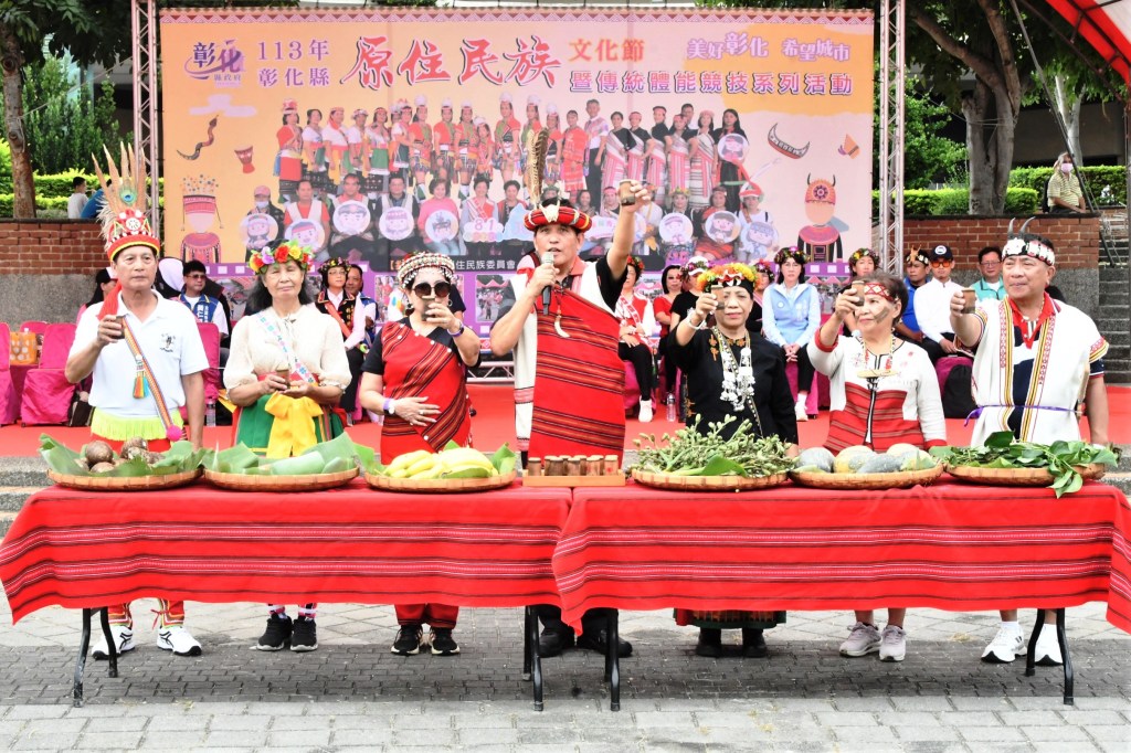 彰化縣原住民族文化節暨傳統體能競技系列活動,今(20)日上午在彰化縣立體育館圓形廣場登場,彰化縣長王惠美、各級民代與族人好朋友一起共享文化盛宴。王縣長表示,一年一度彰化縣原住民文化節暨傳統體能競技活動,彰化原住民朋友們有16族,6千多位族人,藉由活動老中青三代一起歡樂動起來,也希望讓原住民好朋友們在彰化安居樂業過好生活。