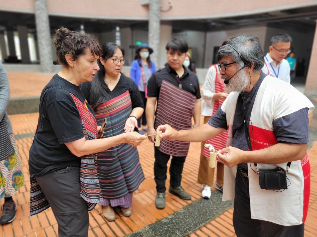 臺、澳洲藝術家在臺中市纖維工藝博物館共同傳承南島文化的綠工藝!臺中市政府文化局昨(16)日在纖博館舉辦「遙遠的記憶—貝珠工藝的古與今」特展第二場次的工作坊,由澳洲格里菲斯大學朱迪‧沃森Judy Watson教授與臺灣東華大學林盛火老師進行交流並帶領現場學員創作。