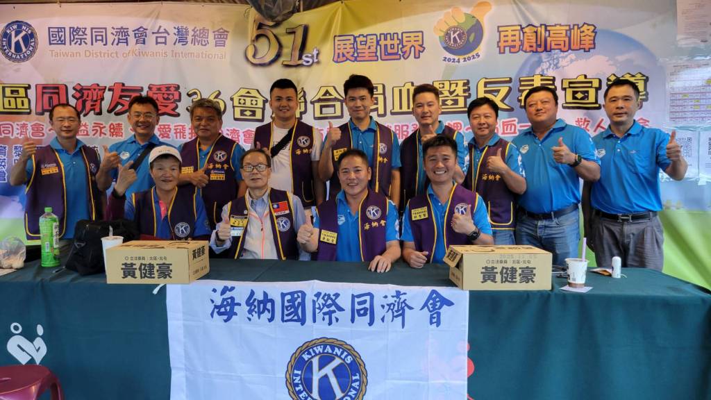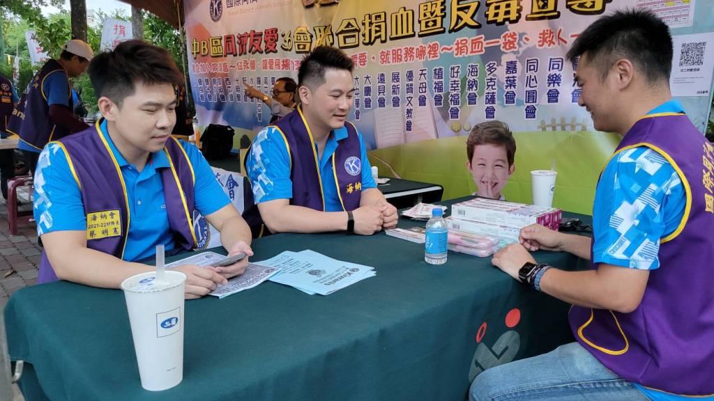 此次活動身為海納國際同濟會總會會長的陳堂立身體力行,與中B區海納會會長黃鉦壹率領同濟會的夥伴們踴躍捐血。
