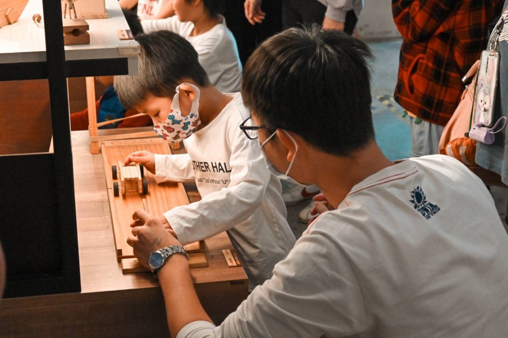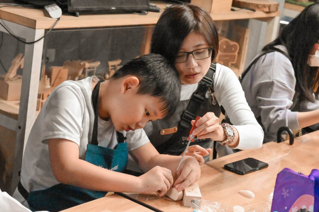 主要是職人課程會需要用到鑽孔機、線鋸機、砂輪機之類較有危險性的電動器具,所以建議大人或小孩子有大人陪同再玩比較好。而DIY手作就比較簡單,讓孩子拼拼貼貼即可完工,大家可以看狀況去選擇。以及更能在活動中增加親子間的互動感情。