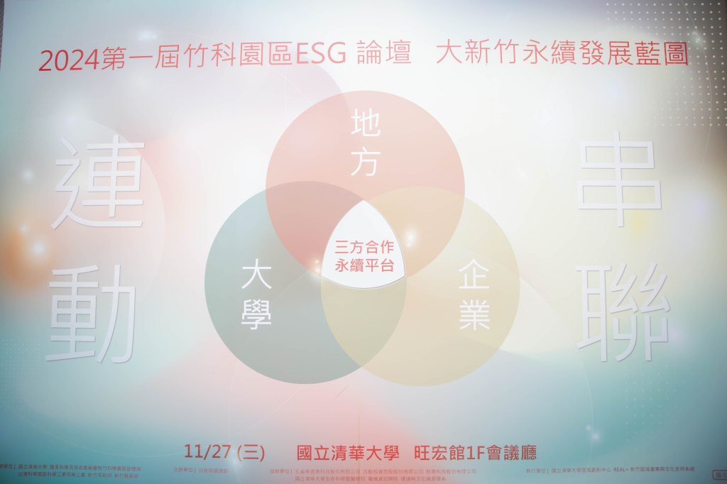 新竹市為高科技產業林立與學術單位薈萃之地,肩負著城市經濟發展與社會永續環境的責任,緊密連結企業ESG、大學社會責任USR與環境經濟發展。環保局表示,為探討經濟發展如何與環境永續並存及調和,首屆「竹科園區ESG論壇」今(27)日於國立清華大學登場,針對「生物多樣性及TNFD」、「綠色消費與減碳平台」、「社區營造與地方創生」三個主題,藉由新竹縣市及竹科園區企業、清華大學與長期耕耘的民間團體協力,進行專題探討,提升ESG策略與做法,齊心擘劃大新竹的永續發展藍圖。