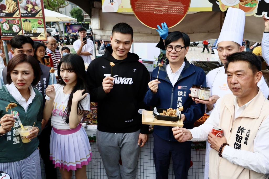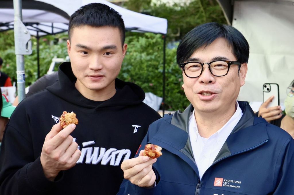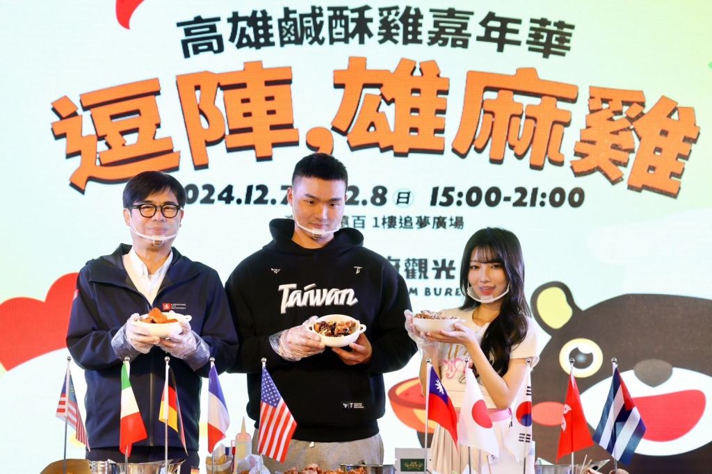 第四屆「高雄鹹酥雞嘉年華」今(7)日登場,活動為期兩天、地點在高雄大遠百追夢廣場。市長陳其邁下午出席活動,與甫在世界12強棒球賽奪下冠軍的Team Taiwan國手、台鋼雄鷹投手陳柏清,以及台鋼雄鷹Wing Stars啦啦隊人氣女神一粒,攜手調製美式、日式及法式炸雞,並巡禮各攤位,品嚐多國風味炸物。