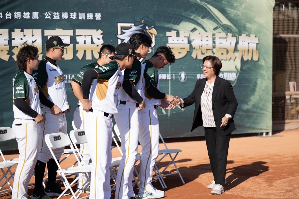 「2024台鋼雄鷹公益棒球訓練營」今(8)日上午由「12強國手」陳柏清搭配曾子祐、吳明鴻、葉保弟、江承諺及王博玄等5位職棒球星共同組成豪華教練團,在八卦山棒球場進行棒球訓練營活動,並提供南郭國小等6所國小球員共同參與活動,藉由訓練營帶給選手們不同的訓練模式並傳承經驗。彰化縣長王惠美於開幕式感謝台鋼雄鷹熱心推廣基層棒球運動,期許彰化學子把握機會好好學習,入寶山不要空手還,期待未來大家都能像台鋼英雄們、中華英雄一樣,成為明日之星,為彰化、為國家爭光。