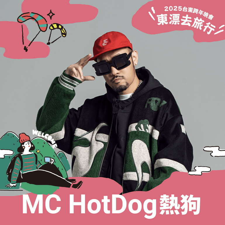 2025台東跨年演唱會,主打「東漂」概念,歡迎所有朋友一起在台東最美的星空下聽歌歡唱!目前宣布首波超狂卡司,奪下本屆金曲獎歌王的MC HotDog熱狗與嘻哈天團頑童MJ116,用最high的嘻哈音樂歡渡2025,讓饒舌快嘴魅力炸翻東台灣的跨年夜,接下來也將有天王天后等級的演出陣容,會陸續公布。