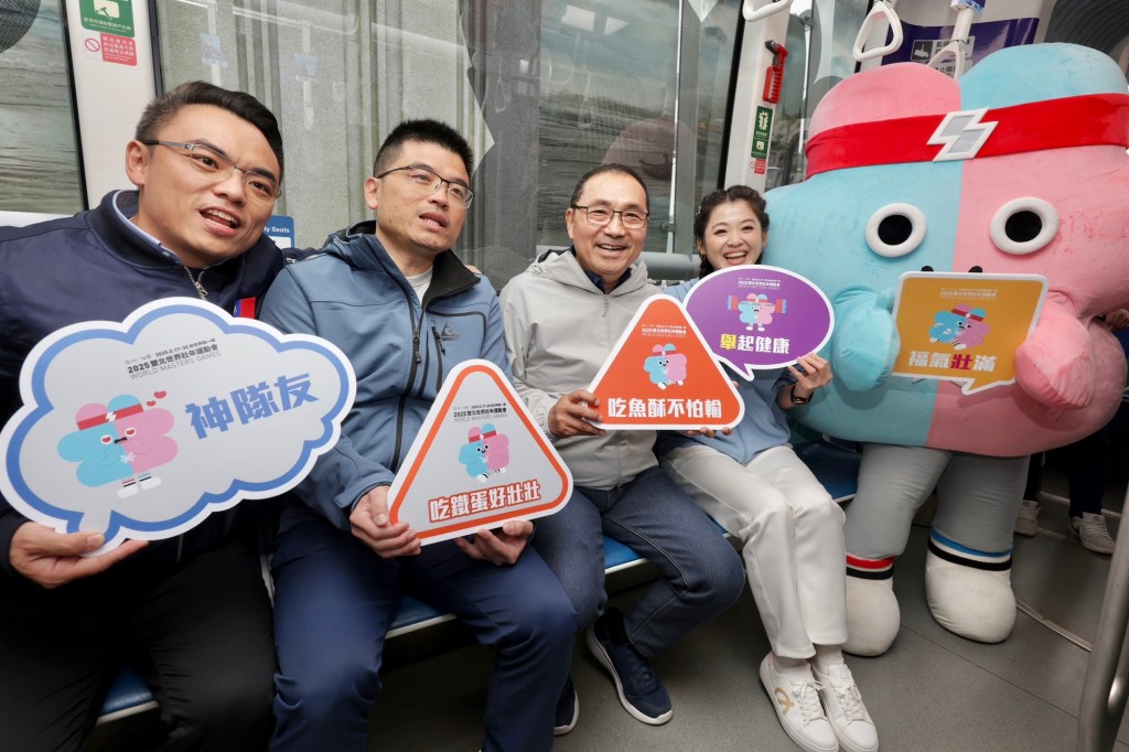 2025雙北世界壯年運動會將在明年5月17日至30日登場,今(16)日特別在新北輕軌淡水漁人碼頭站舉行「壯寶列車」首航記者會,由新北市長侯友宜與賽會吉祥物「壯寶」共同搭乘主題列車進場,列車外觀以壯寶運動圖像突顯活潑、熱情、歡迎來新北的構思。現場特別邀請已在備戰世壯運的杜哈亞運、雅典奧運銀牌射箭國手陳詩園跟大家分享即將再次站上國際舞臺的興奮與期待。侯友宜介紹大家學業、愛情、財運、事業、健康、整體運勢的壯寶祈福卡,為世壯運賽會期間新北市府推出的10條宗教巡禮路線揭開序幕,邀請所有參與者體驗臺灣獨有的宮廟文化。