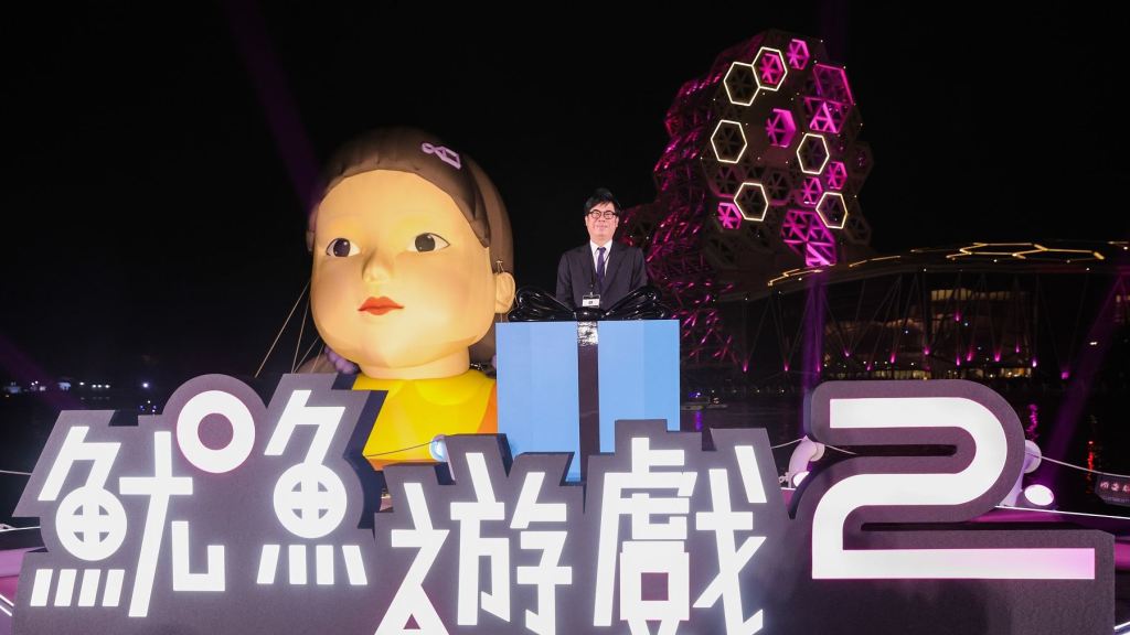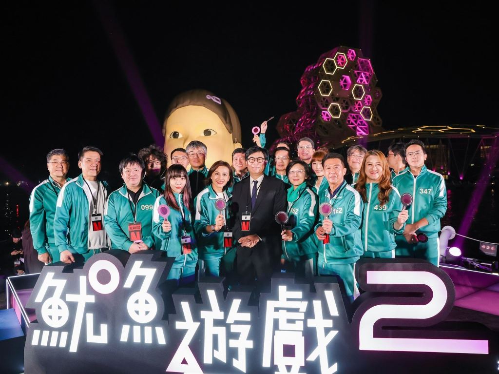 高雄致力鏈結國際影視產業,Netflix全球熱播人氣韓國影集《魷魚遊戲》第二季即將於12月26日上線,此次選擇高雄作為台灣唯一宣傳據點,與全球多個城市串聯,今(21)日舉辦「1.2.3高雄人」萬人粉紅派對,活動現場湧入11萬名粉絲同樂!市長陳其邁身著帥氣西裝,化身劇中由孔劉飾演的「招募員」出席記者會,並為活動進行點燈啟動,高喊「1、2、3高雄人」帶領大家一同揭開《魷魚遊戲》第二季的序幕。
