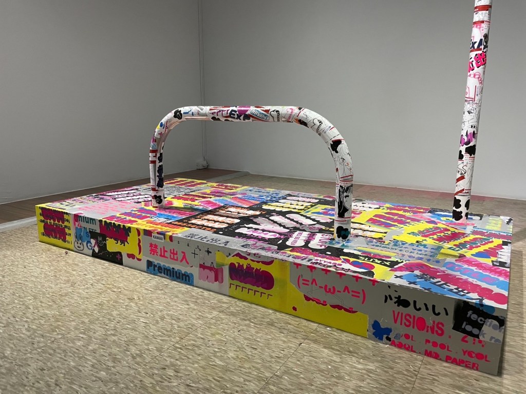 文化局提到,張鈞傑的作品受到駐村期間環境的啟發,展現了駐村計畫對藝術創作的支持。藝術家以阻車器、告示牌、變電箱、高架橋柱等公共設施為創作素材,這些物品表面所覆蓋的符號與圖樣,不僅是功能性的標示,更是情感表達與次文化語言的象徵。