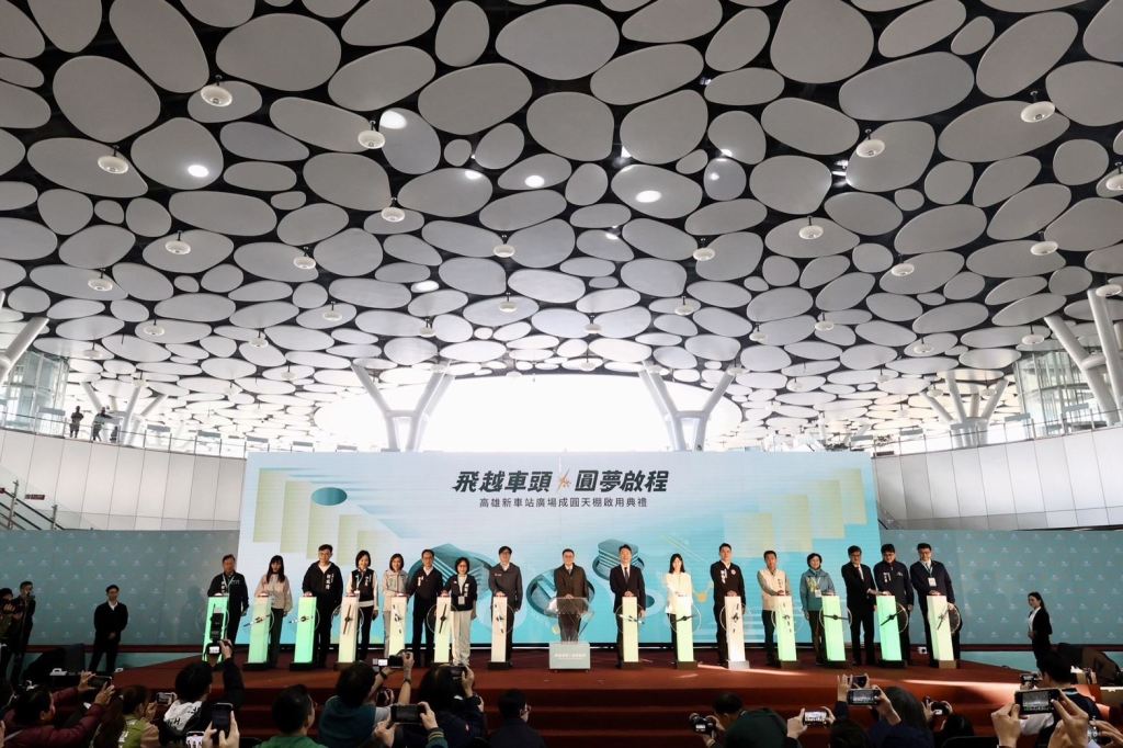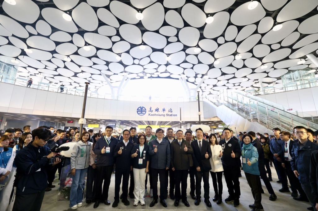 高雄車站廣場及天棚今日正式啟用,市長陳其邁陪同行政院長卓榮泰、交通部部長陳世凱及多位民意代表共同見證歷史性時刻。陳其邁表示,高雄車站承載高雄人的情感,一代又一代高雄市民的回憶與情感連結,新車站不僅延續了這些珍貴的歷史記憶,更展現了高雄未來的無限潛力,他向過去多年支持工程的周邊居民與工程人員致上深深謝意,隨後在鐵道局的導引下,進行簽燈儀式及天棚巡禮,瞭望高雄車站帝冠式歷史建築及週遭風景,並揭曉天棚命名結果「高雄綠之丘」。