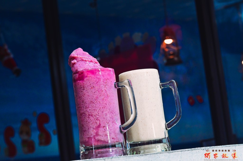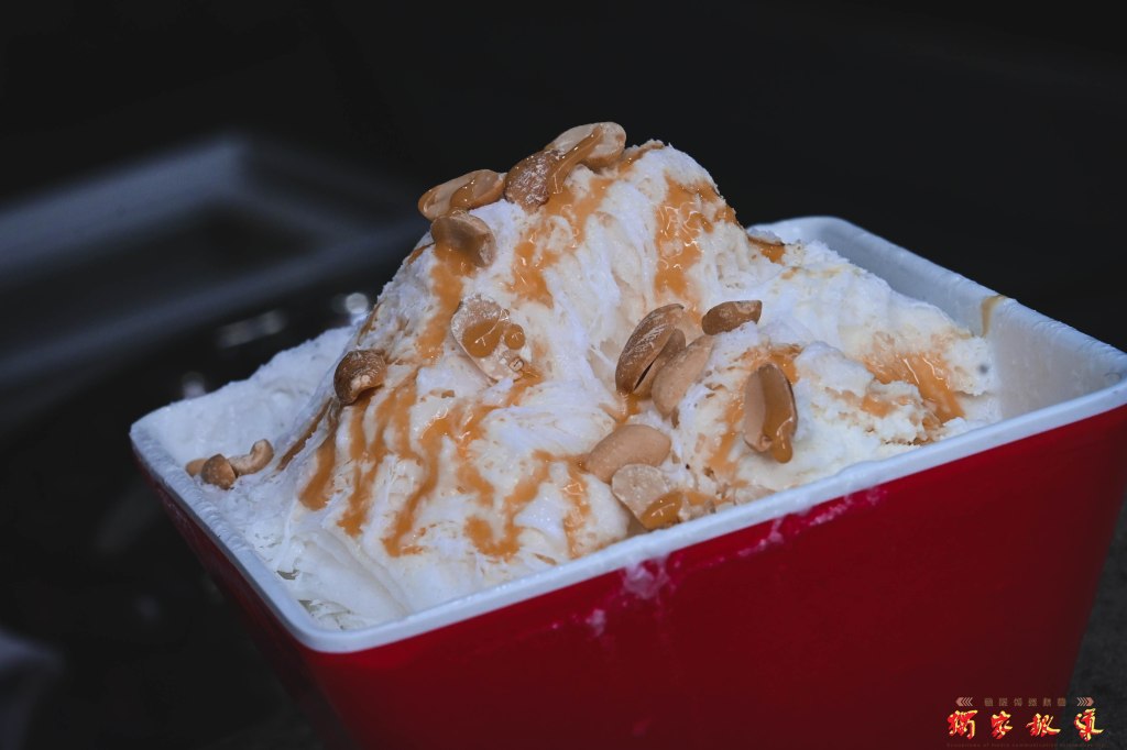 雪花冰系列,是用自製的冰磚,再透過雪花冰機打製,雪花冰內還有料,第一層布丁、第二層冰淇淋,最後才撲滿雪花冰,讓客人再吃冰時,每挖一口都有不同的驚喜,從最上層吃到最下層的布丁,層層口感不同,每口都有驚喜,讓你吃冰不無聊,每口都好玩。