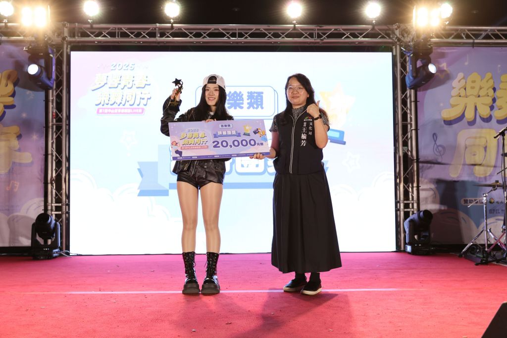 此外,音樂類首獎由台北城市科技大學「SNAKE樂團」摘下,評審團獎為僑光科技大學「ZX」;最佳創意獎、最佳造型獎及最佳人氣獎分別由台北城市科技大學「初芽」、樹德科技大學「黃宇彰」、僑光科技大學「ZX」獲得。