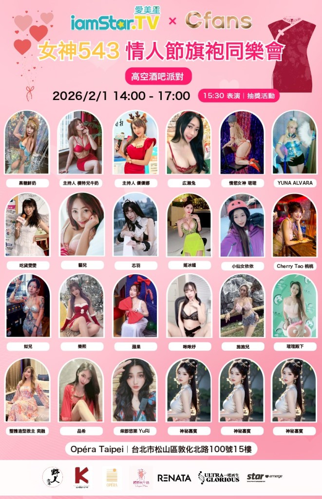 情人節前夕,台北市松山區的高空酒吧 Opéra Taipei,一場以「旗袍」為主題、結合網紅文化與時尚美學的活動——【女神543 情人節旗袍同樂會】,於 2 月 1 日正式登場。由 iamStar.TV 攜手 Cfans 聯合舉辦,本次活動不僅話題性十足,更成功吸引眾多網紅、女神與粉絲齊聚一堂。