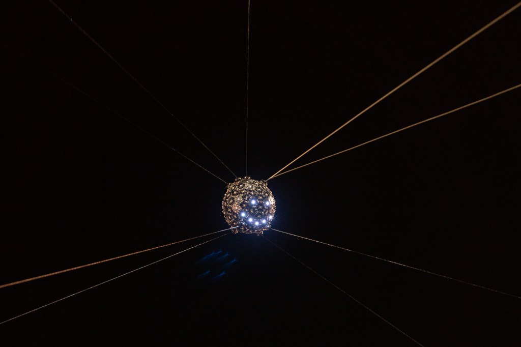 《最後一問》由文化部「藝文場館科藝創新計畫」支持,在沒有真人演員的肉身下,舞台上的主角化為「光球」與兩隻「機械手」。團隊透過極度精密的動作設計,讓一顆光球的移動具備演員的呼吸感,讓機械手臂的動作展露角色的性格。同時,作品亦運用了大量的尖端影像科技,包含4DGS(Gaussian Splatting)技術,精準整合實體光球與虛擬影子的空間呈現,進一步打破視覺邊界。最大的挑戰是讓科技隱形,讓情感浮現,讓大家忘記舞台上沒有人,卻感覺到滿滿的生命力。